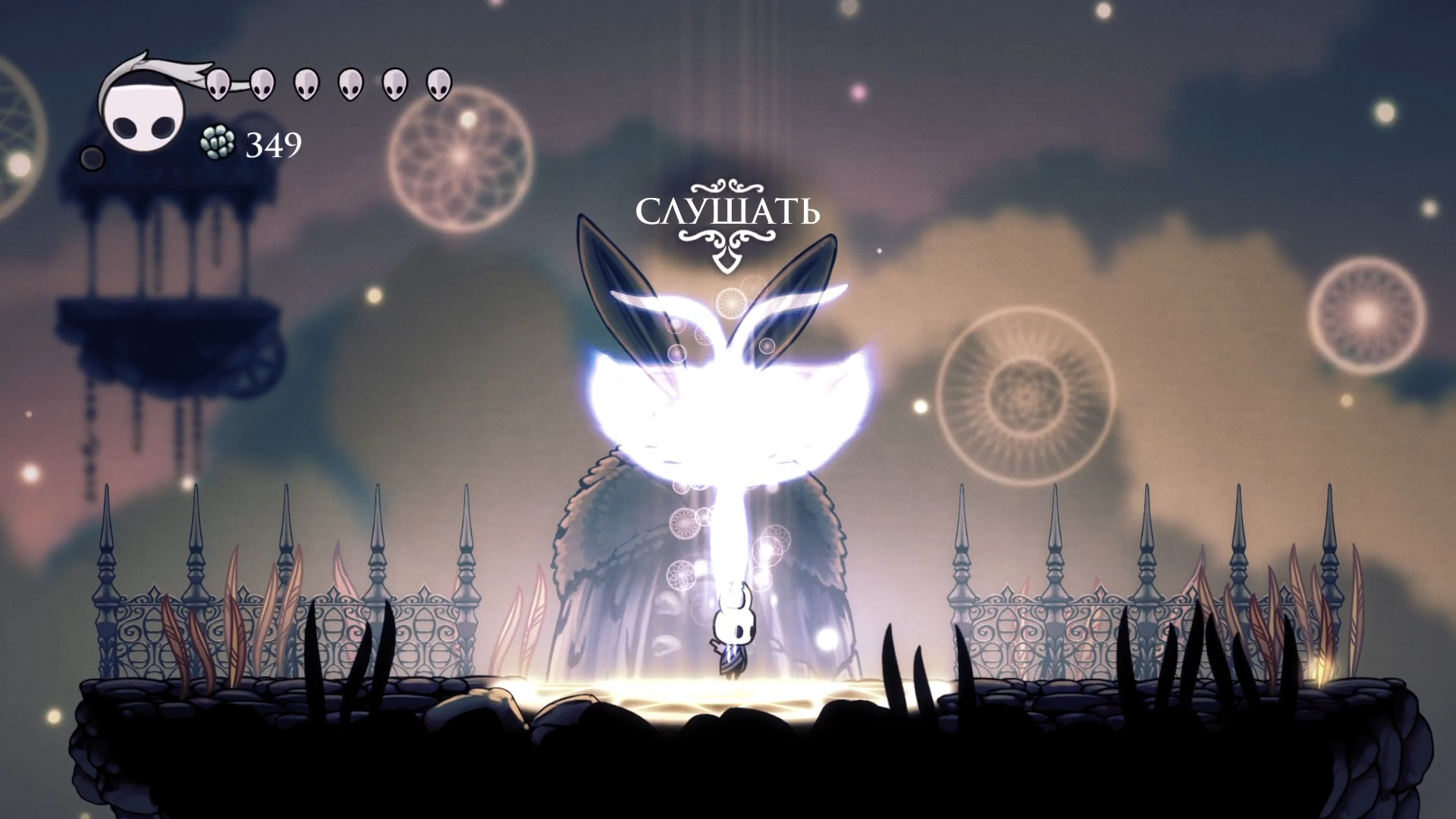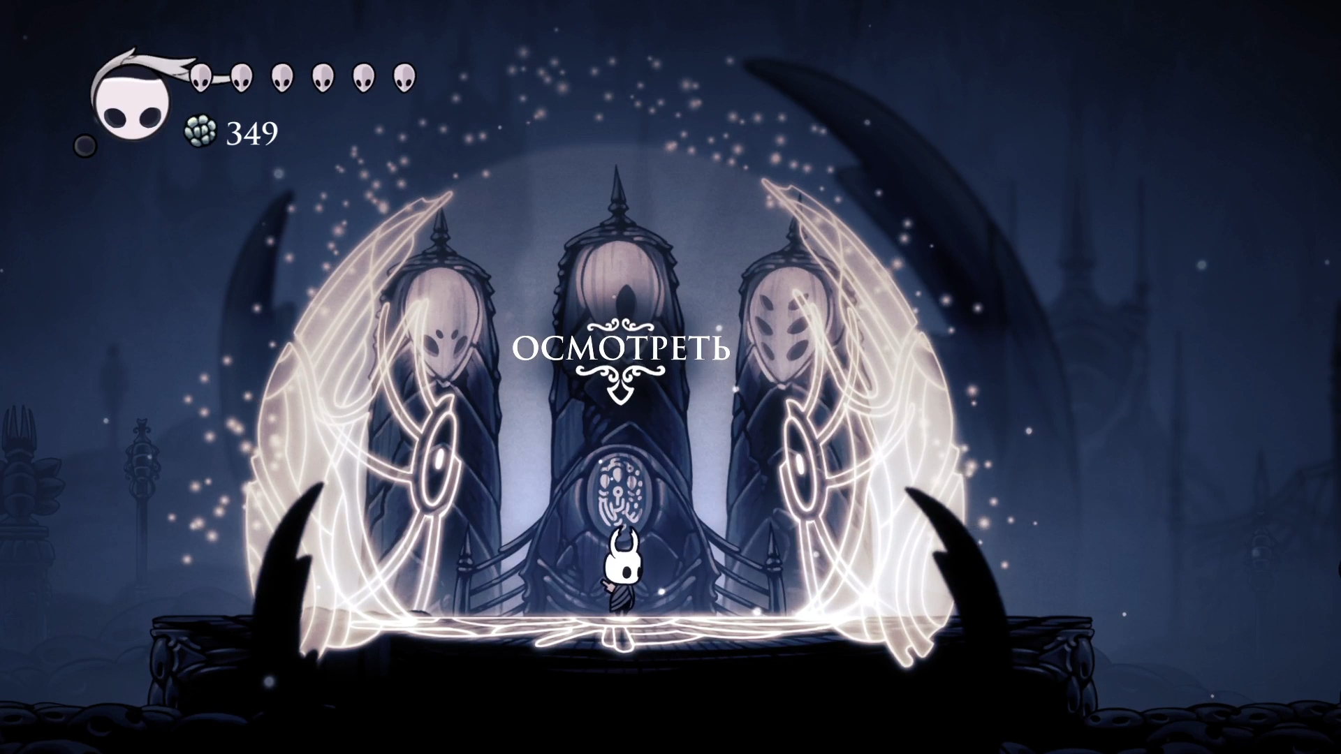 В итоге я выбрал направление всегда примерно на Восток и, похоже, явыбрал его не правильно, потому что картографа найти я так и не смог. А вместо этого нашел пропасть, которую не смог перепрыгнуть и полетел в самый низ, в итоге, оказавшись в совершенно другой локации. Жуткое окружение, похожее на кладбище, где я вскоре обнаружил статуи Грезящих, духи которых уже являлись ко мне после победы на Хорнет.