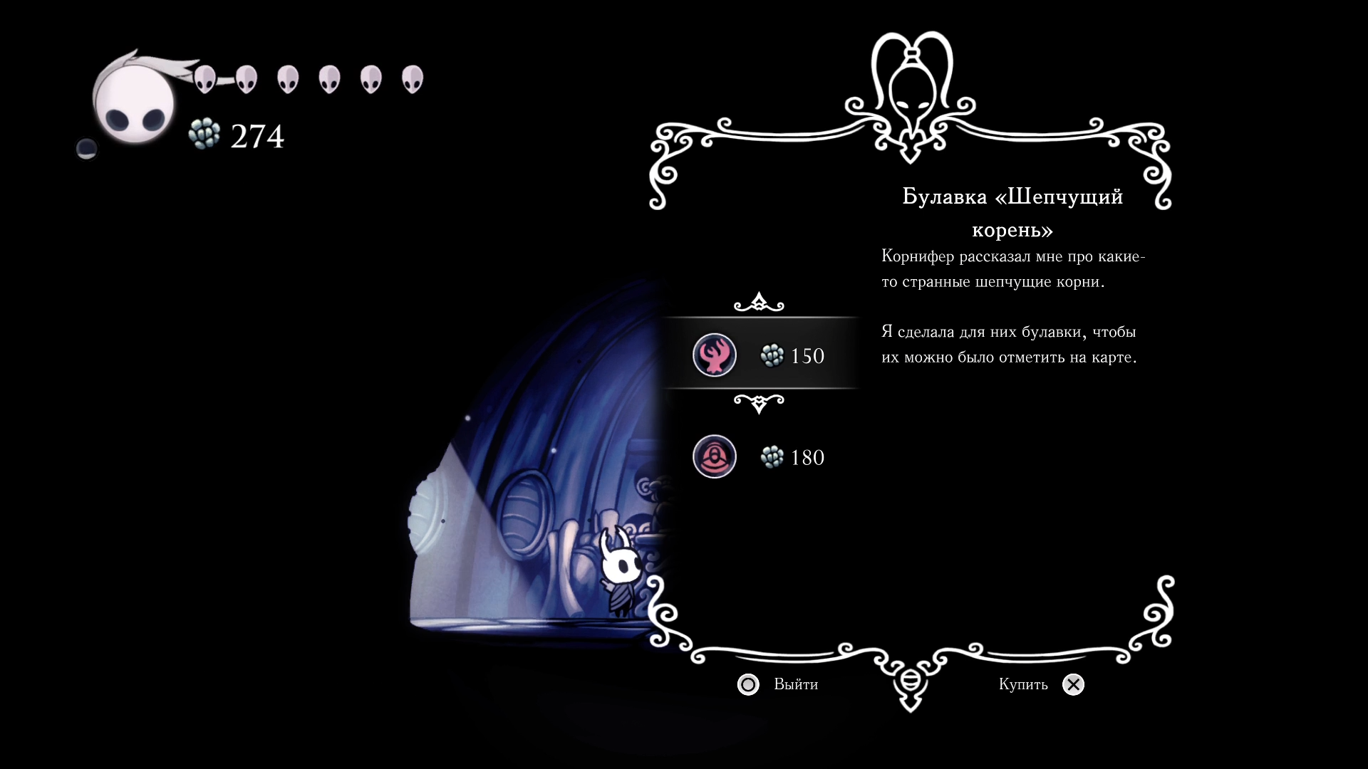 Как же хорошо, что вход на Вокзал рогачей находится прямо на одной из платформ в этой локации. Поэтому, закончив сбор, я вернулся в Перепутье, где в первую очередь купил в лавке карту Земель упокоения (так называется локация, в которую я свалился из Кристального пика), а также булавки, показывающие на карте деревья с сущностью и какие-то могилы воинов. Что ж, бэктрэкинг начинается.